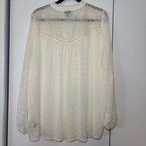 Torrid Women’s Clip Dot Chiffon Lace Trim Blouse White Ivory 3X