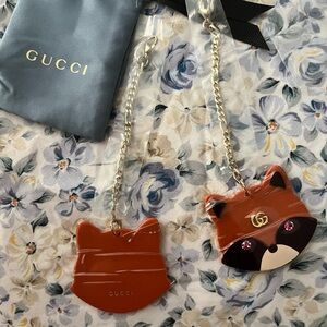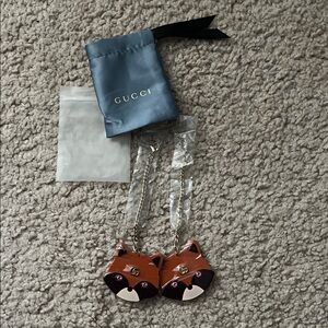 Elegant Gucci pouch in blue satin. Features a gold chain detail. Authentic can be used/ made into earrings necklace/keychain/bag charm authentic came from Gucci sunglasses 🕶️ any questions please ask