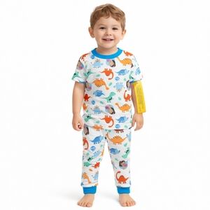 Adorable Mis Rachel toddler pajama set featuring a colorful dinosaur print kids love!