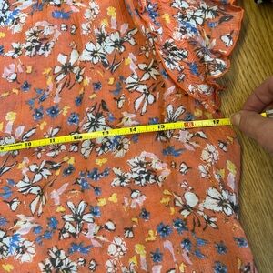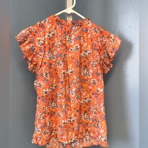 Brighten your wardrobe with this vibrant floral orange top. Perfect for any occasion, this top offers a stylish and comfortable fit. Excellent used condition.