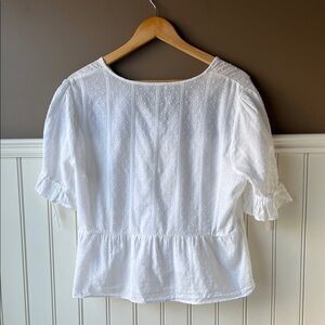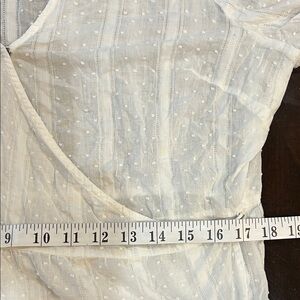 Madewell White Tie-Sleeve Wrap Top in Swiss Dot