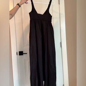 Beautiful black ZARA midi dress in a flattering empire waist silhouette. Features a deep V neckline, wide straps, and a soft flowy skirt that drapes beautifully. Lightweight cotton fabric makes it perfect for summer, vacations, or dressing up with heels.