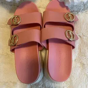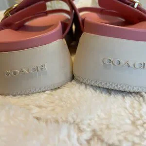 COACH Bubblegum Leather 2 Strap Slide Sandals