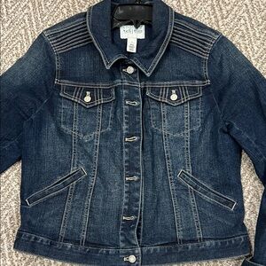 Classic Levi's denim jacket in dark blue. Features button front and chest pockets. Perfect for casual wear. ( made for White House / Black Market
