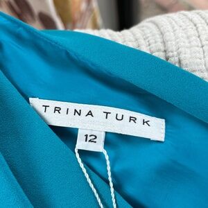 Trina Turk's Amal minidress features a fitted one-shoulder silhouette. An elegant long cape sleeve defines the look. Drapes beautifully. Has a loose stitch (see photos)