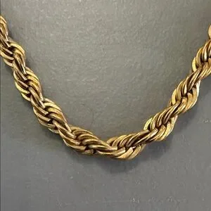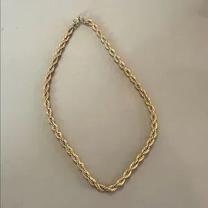 This elegant gold tone rope chain necklace adds a touch of sophistication to any outfit. Perfect for any occasion. 16” purchased in Switzerland.
