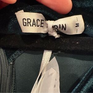 Grace Karin $45 NWT Green Velvet Off-Shoulder A line Dress Sweetheart neckline M