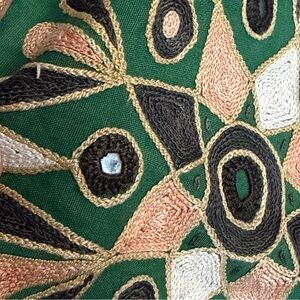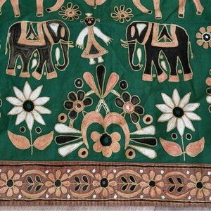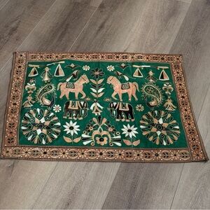 Kutchi Indian Embroidered Wall Hanging w/Mirrors Vintage Elephant Horses Green