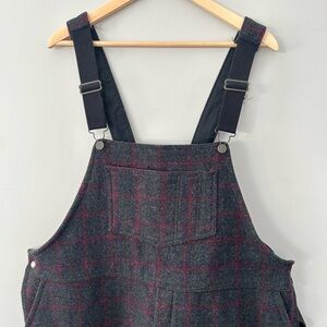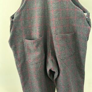 Men’s heavy duty 100% wool charcoal red and green striped plaid bib overalls