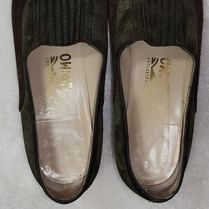 SalvatoreFerragamo Albia Vintage Chocolate Brown Green Suede Heel Loafers Sz8.5
