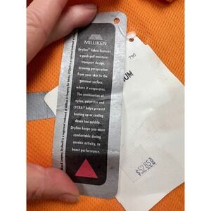 Dolfin performance long sleeve shirt in a vibrant safety orange hue, crafted from Milliken Dryline fabric designed for moisture transport and temperature regulation. This athletic top features a comfortable raglan sleeve construction and a reflective horizontal stripe across the chest and back for enhanced visibility during low-light activities. The lightweight, breathable polyester mesh provides a push-pull moisture transport system to keep you dry and comfortable during high-intensity aerobic workouts. Finished with a classic crew neck and banded cuffs, this Made in USA technical top is ideal for running, cycling, or outdoor training.