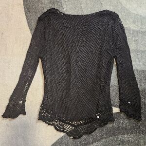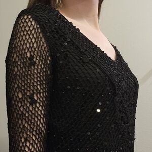 Elegant black crochet top with sequins. 3/4 sleeves. Excellent condition but it's missing the tags.