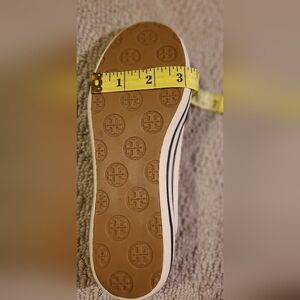 These Tory Burch slip ons features iconic logo on the toe. Perfect for everyday style. These shoes have been preloved. Some slight discoloration near toes. Soles are in great condition. These shoes have lots of life left.