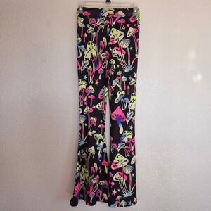 Shein Neon Mushroom Print Flare Leg Pants Black High Waisted Bell Bottoms XS