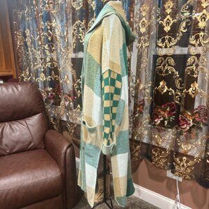coat sweater colorblock checkered hunter green olive tan camel ivory cream