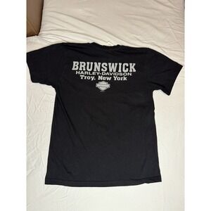 Harley-Davidson Brunswick Troy NY Black Graphic T-Shirt Medium Made in USA
