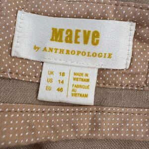 Anthropologie Maeve Wide Pleated Khaki Midi Skirt Size 14 Tan Linen Blend