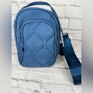 Stylish blue quilted crossbody bag with adjustable strap. Perfect for everyday use.