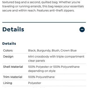 🆕 Samantha Brown Crown Blue Quilted Anti-Theft Crossbody Bag triple compartments