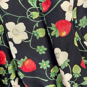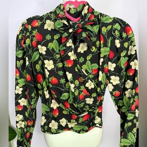 A fabulous vintage Emanuel Ungaro silk blouse from the 80's/90's with a beautiful strawberry and floral print and bow. Tagged a size 6 but fits a bit smaller. Probably best for an XS/S. New with tags. $750 retail.