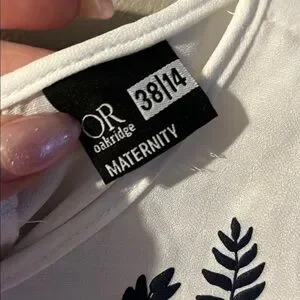 This cream blouse features a striking black embroidery around the neckline, adding a touch of elegance to its sleeveless design. Made from a soft material, it offers a comfortable and relaxed fit, perfect for casual outings. The floral embroidery extends slightly onto the shoulders, enhancing its stylish appeal. This is maternity but could be worn by anyone