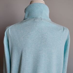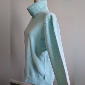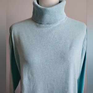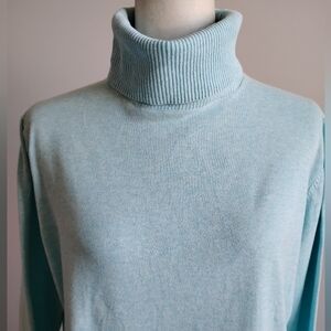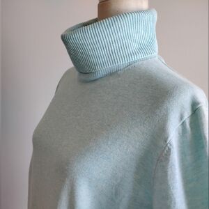Lands' End Lightweight Cotton Turtleneck Sweater Tiffany Blue Classic Size XL