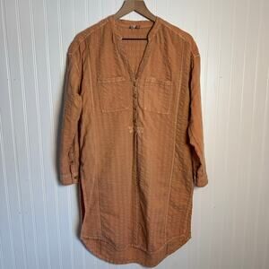 Anthropologie Pilcro Seersucker Tunic Button Down Top Orange Women’s Size XS