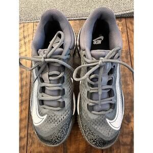 These were my son’s indoor/turf cleats and were barely worn, so they are in excellent condition. Perfect for travel ball, winter training, turf practices or indoor cages. Lightweight feel with great traction and comfortable Nike React cushioning.