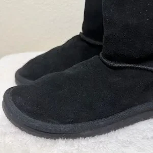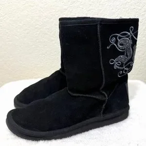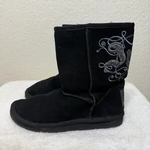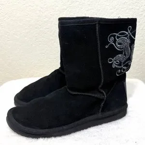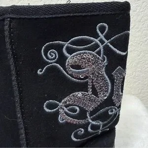 Juicy Couture Black Suede Boots Silver Sequin Juicy back faux fur lined Size 8