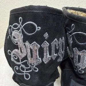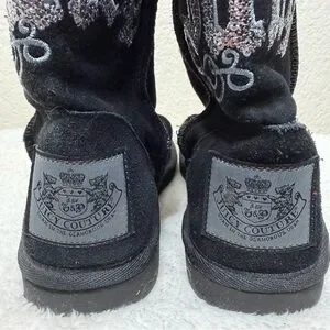 Juicy Couture Black Suede Boots Silver Sequin Juicy back faux fur lined