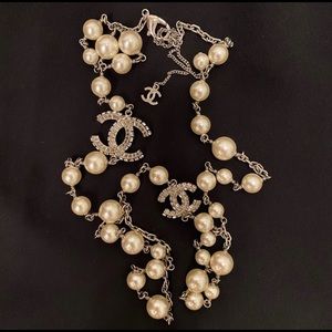 Elegant CHANEL necklace with cream pearls. Features iconic logo accents. Perfect for any occasion. I’m up for negotiation and offers. Retail / market value around $2,500–$3,000” I am only selling because I want to buy a wedding dress :)