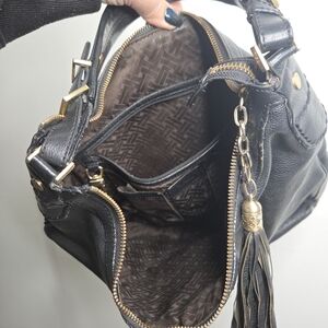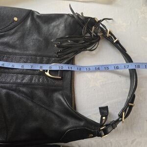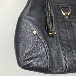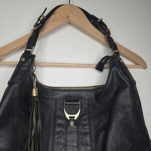 Cole Haan Hobo Handbag Soft Pebbled Black Leather With Tassel Purse