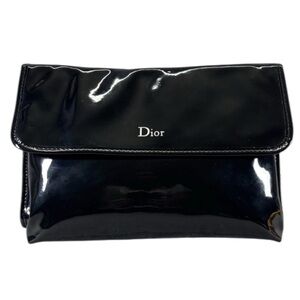 NEW Dior beauty patent makeup case / clutch in black. CD charms still wrapped. Sleek and sophisticated. Glossy finish with Dior elegance. Ideal for any event. Interior has 2 zip compartments. Exterior has snap closure. 11” x 8” x 2”. Very good condition
