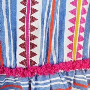 Boden Made In India V Neck Striped Dress Fringe Short Sleeve Blue Pink sz 12
