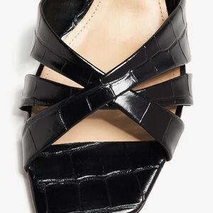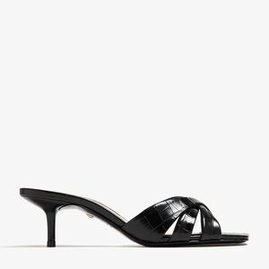 Chic black mules with croc-embossed design. Sleek and stylish for any event.