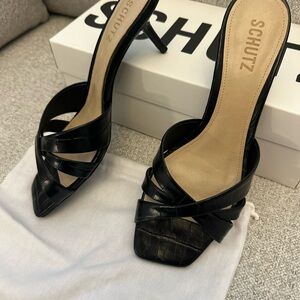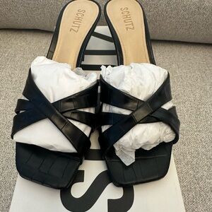 SCHUTZ Black Croc-Embossed Keefa Leather Mules New/ Box & Dustbag Size 8 60mm