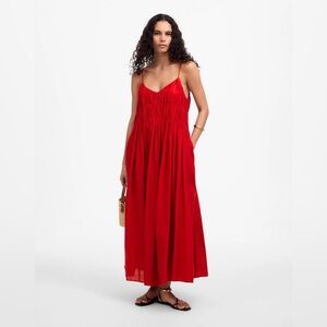 NEW Madewell Red Textured V-Neck Valentine’s Day Midi Dress with Pockets, Size Medium. Easy fit.