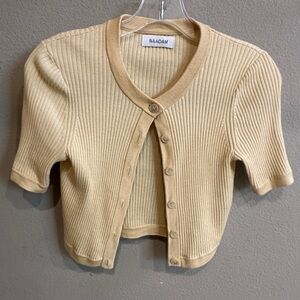 Naadam Merino Silk Ribbed Shrunken Cardigan 90s Minimalist Size S butter yellow