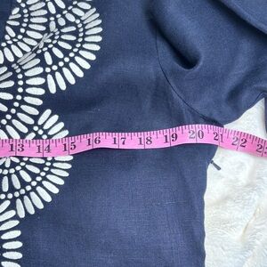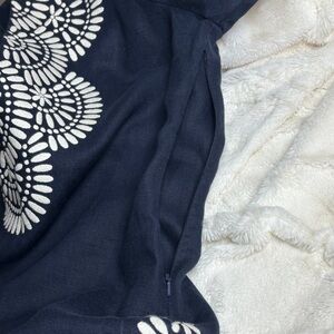 Tory Burch Women’s Navy and White 100% Linen Tunic