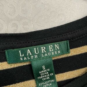 Ralph Lauren black with gold stripes size S . Long sleeve, new no tag 80% cotton. Pit to pit 14 “length 23” sleeve 23”.