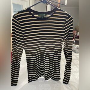 Ralph Lauren black with gold stripes women’s top long sleeves.