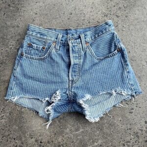Levis 501 Shorts Womens Small Blue High Rise Distressed Cutoff Denim Jean