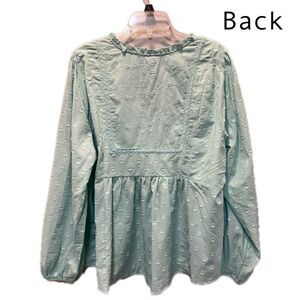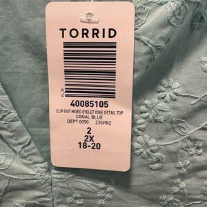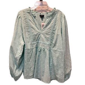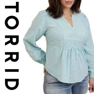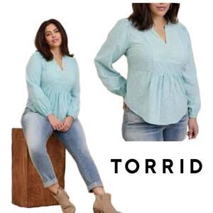 NWT Torrid Light Blue Eyelet Clip Dot Long Sleeve Cotton Top Blouse 2X