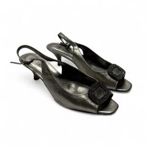 J. Renee Silver Metallic Kitten Heels Rhinestone Buckle Hardware Detail Size 7