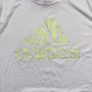 Soft pink Adidas graphic tee with a relaxed, oversized fit. Features a bold logo design and comfy cotton feel—perfect for athleisure, errands, or casual everyday wear. Easy to style with leggings, biker shorts, or denim.
