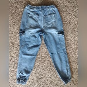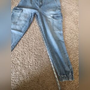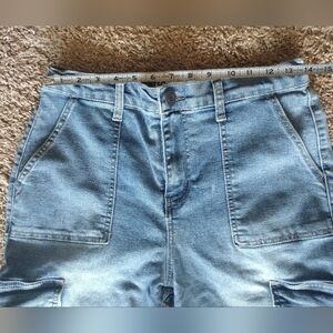 SO High Rise Utility Cargo Joggers, size Medium, with measurements included in photos. Stylish and versatile women's blue cargo jeans. Perfect for casual outings with a comfortable fit. All questions welcome!