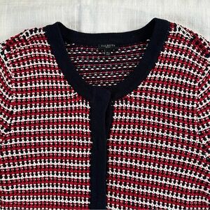Talbots Blazer Style Cardigan Jacket Sweater Sz M-L Red Blue White Classic