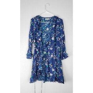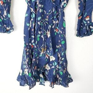 Paloma Blue Fiesta Wrap Silk Long Sleeve Mini Dress L