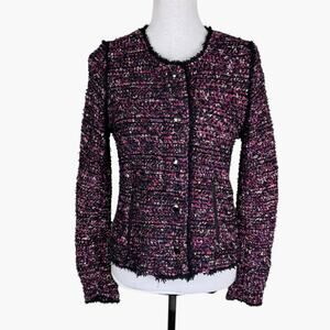 White House Black Market WHBM Amalfi Pink Kiss Tweed Button Blazer Office Jacket