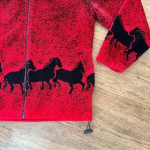 Vintage Coastlines Canada Horse Print Fleece Jacket - Red & Black - Medium